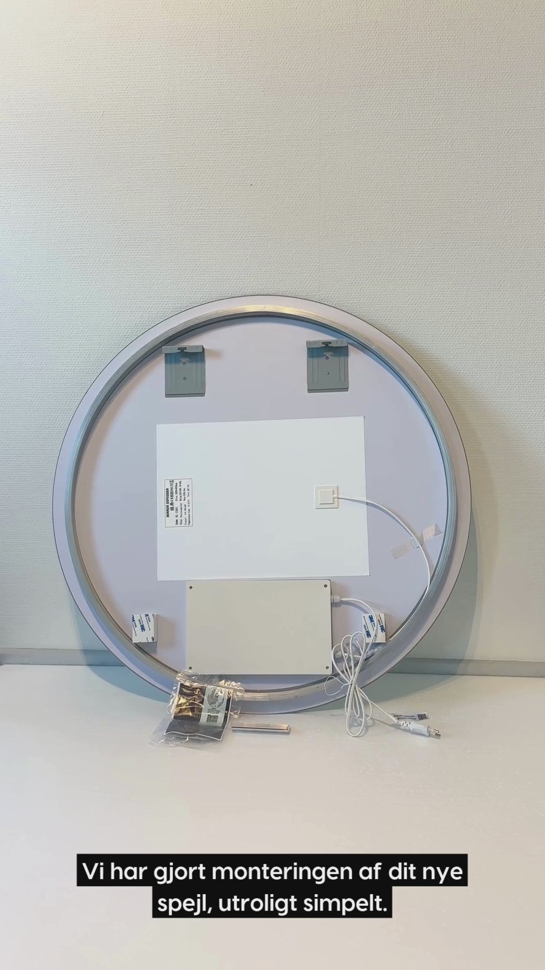 Klik på videoen til højre, for at se en udførlig videoguide på, hvordan du monterer dit runde spejl.