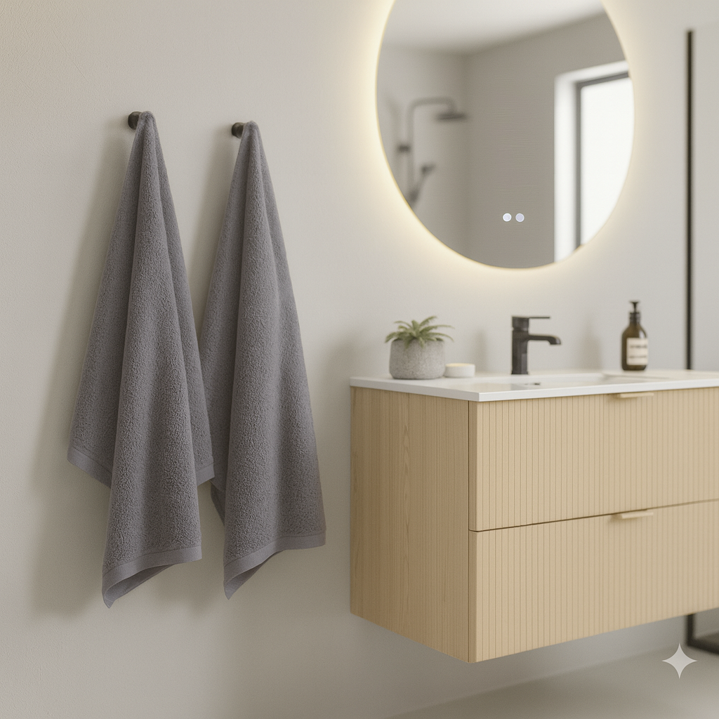 Før første brug kan du med fordel folde håndklædet helt ud, lægge det i koldt vand i omkring en time og derefter give det en vask ved 60°C. Det hjælper med at samle løkkerne og mindsker risikoen for, at tråde trækkes ud.