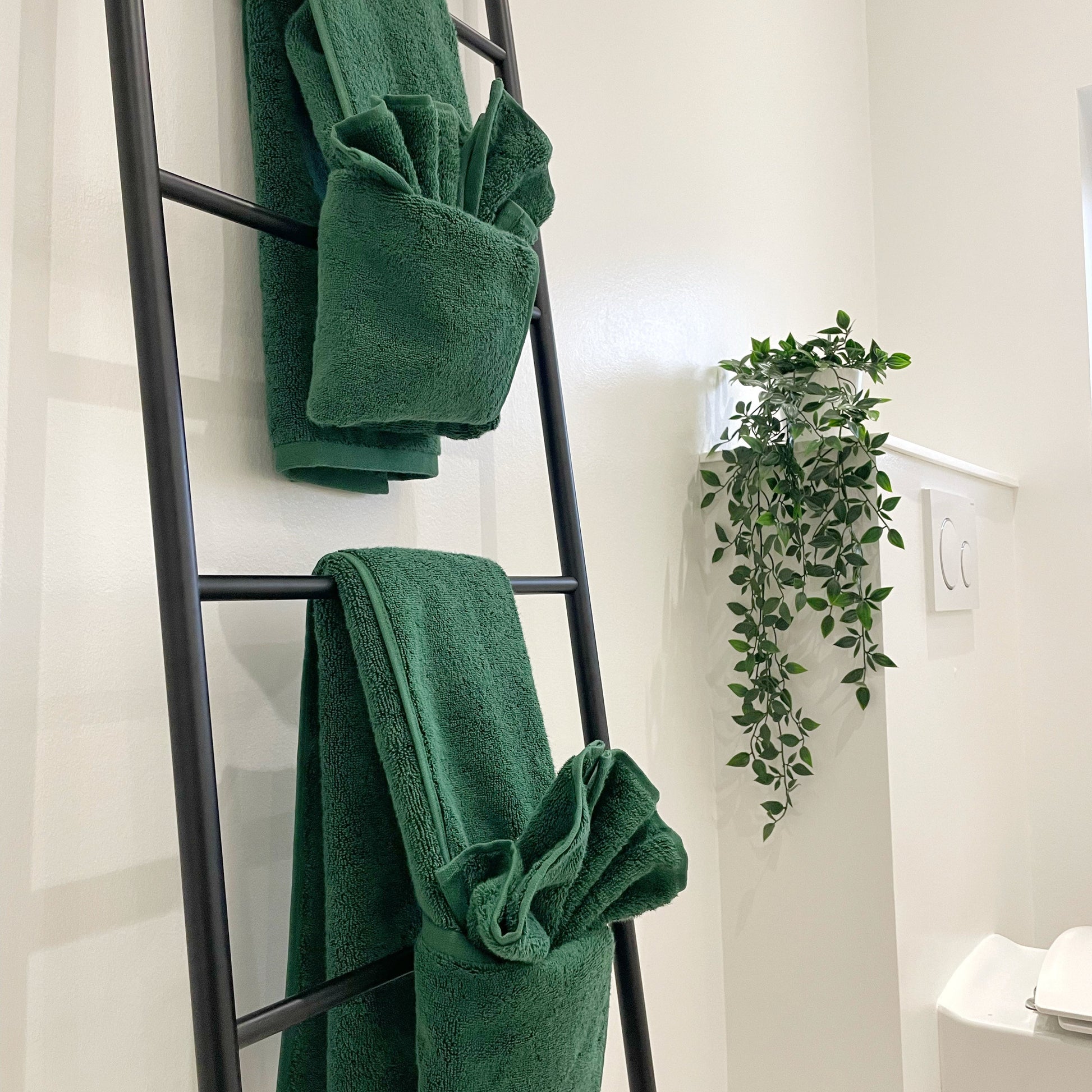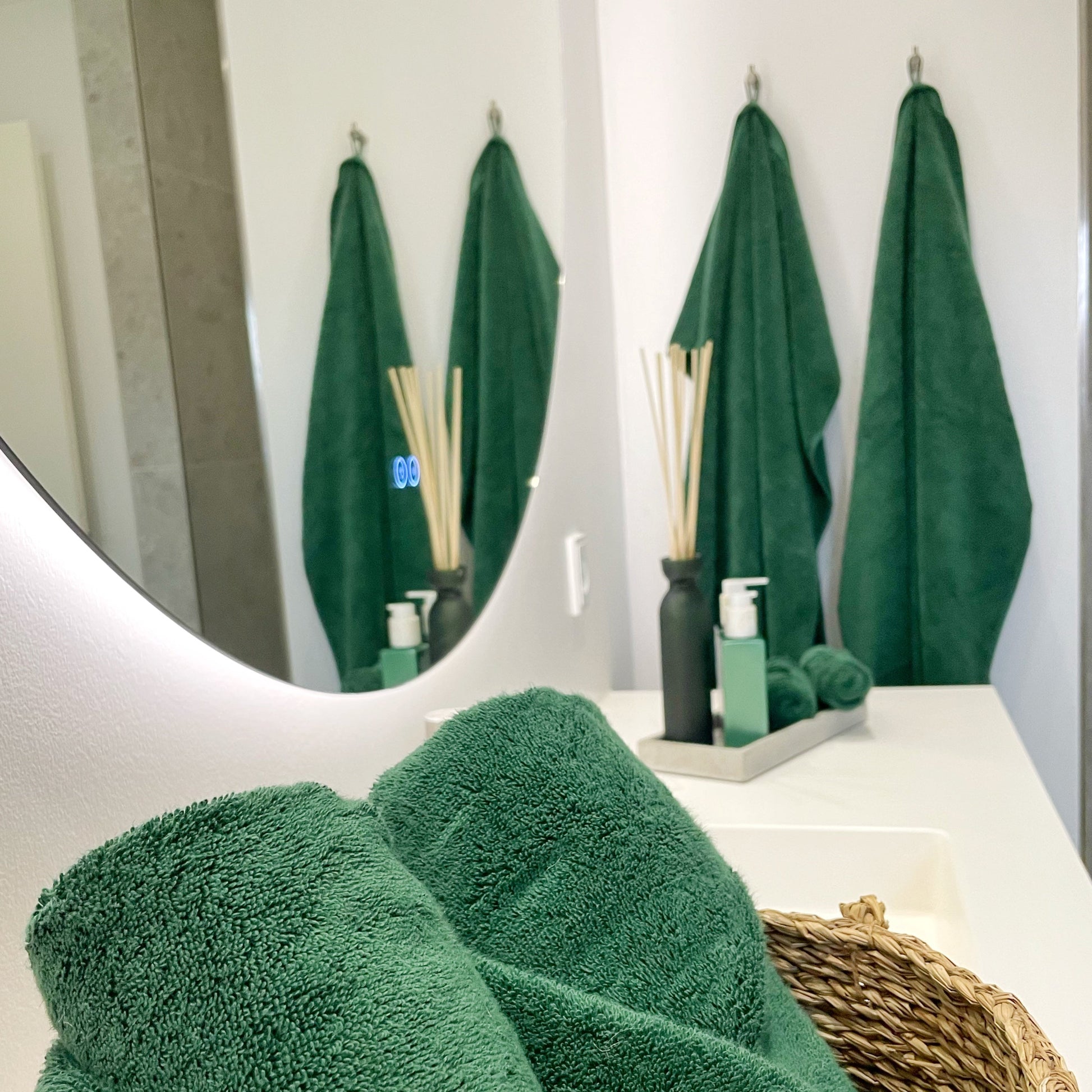Opgradér badeværelset med vores eksklusive pakke med 3 stk Forest Deep håndklæder – perfekt som sæt til hele familien, gæster eller som en holdbar og stilren basiskollektion i dit hjem. Den dybe, naturinspirerede grønne farve skaber ro, varme og et elegant udtryk på badeværelset.