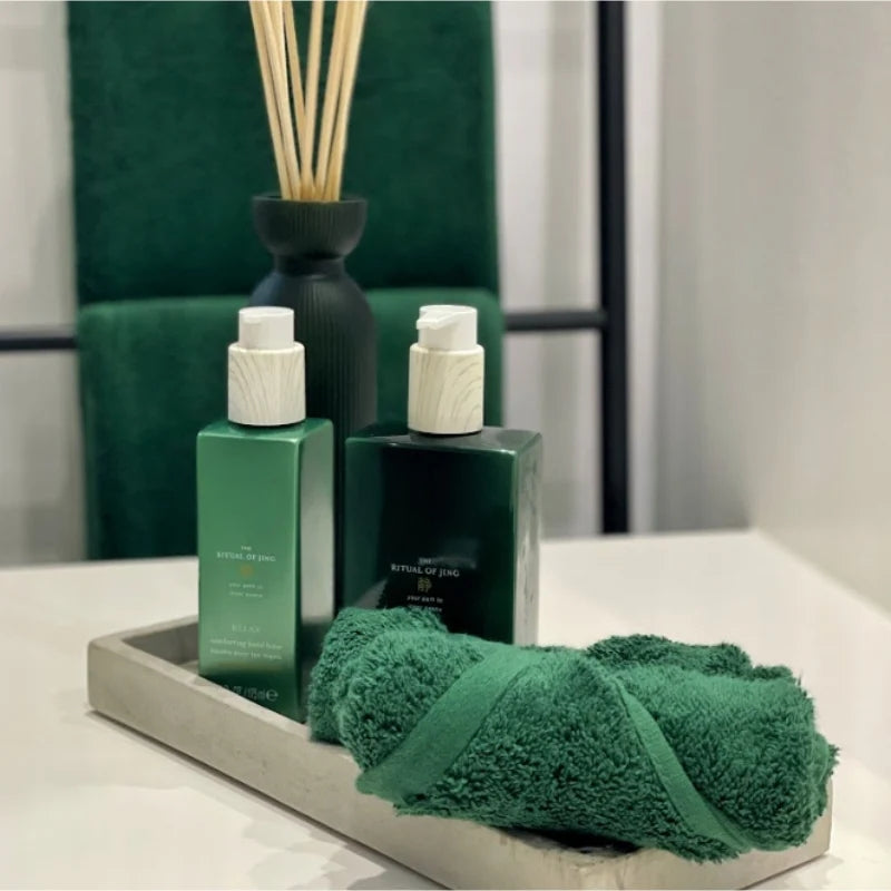 Bring naturens rolige, dybe grønne nuancer ind i dit hjem med vores lille Forest Deep håndklæde, fremstillet i 100% langfibret, hæftet bomuld. Den mørkegrønne farve er både elegant, tidløs og perfekt til moderne badeværelser, hvor man ønsker varme og karakter.