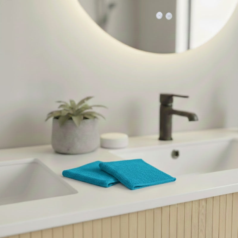 Det lille Aqua Breeze håndklæde tilfører en frisk, let og spa-inspireret energi til dit badeværelse. Den klare turkisblå farve skaber et lyst og indbydende udtryk, der passer perfekt til både moderne og minimalistiske miljøer.