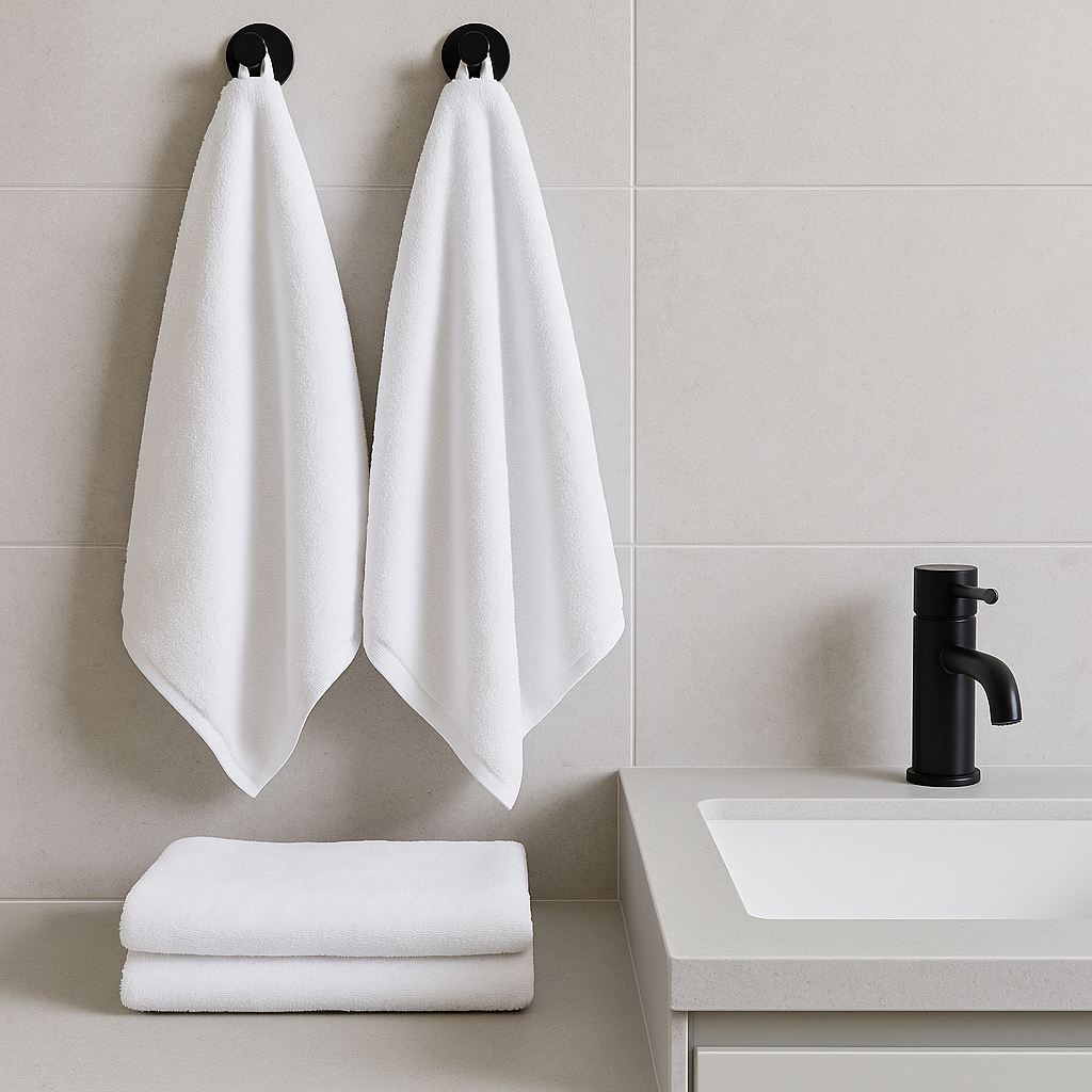 Før første brug kan du med fordel folde håndklædet helt ud, lægge det i koldt vand i omkring en time og derefter give det en vask ved 60°C. Det hjælper med at samle løkkerne og mindsker risikoen for, at tråde trækkes ud.