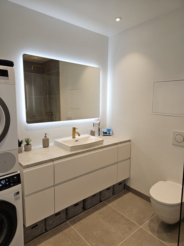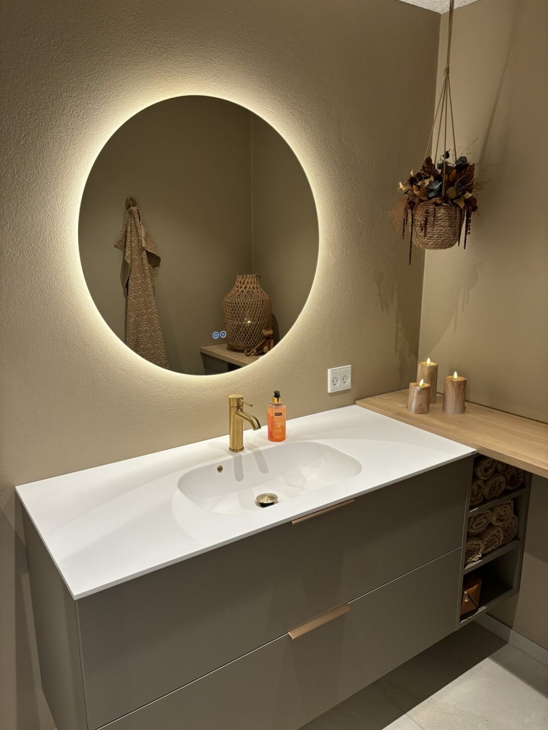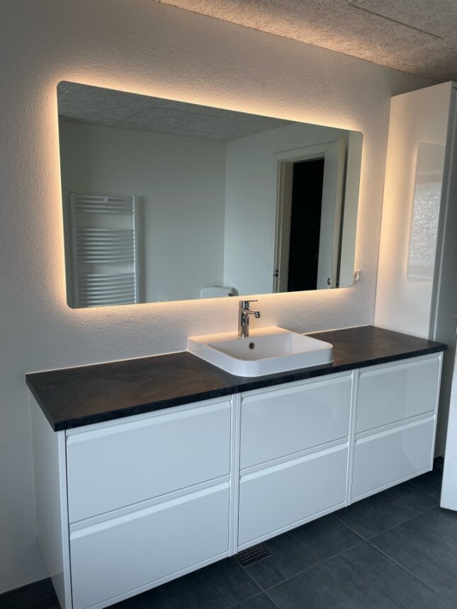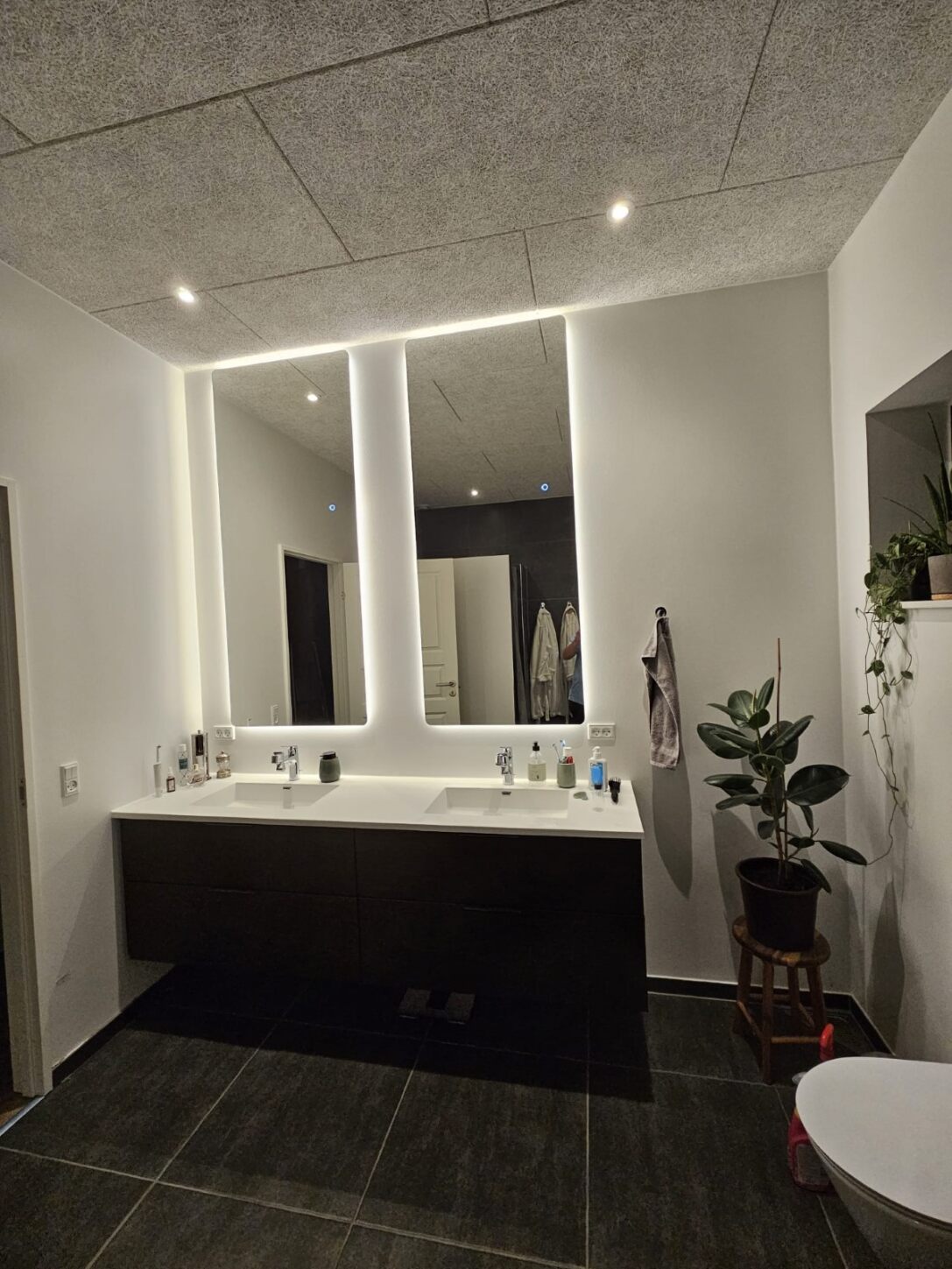 Man kan nemt selv aktivere antidug funktionen i spejlet. Det gøres med 1 enkelt tryk når lyset er tændt. Vi har valgt at antidug funktionen i spejlet ikke skal tænde automatisk sammen med lyset i spejlet, da du langt fra hver gang har brug for antidug funktionen. Derfor aktiveres denne funktion kun når du har brug for den. Dermed bruger spejlet ikke unødig strøm, hvilket også er godt for din strømregning.