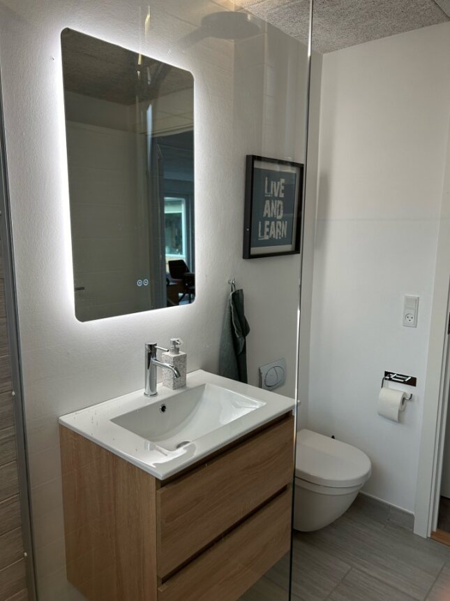 Ja, lyset i spejlet kan sagtens tændes og slukkes på vægkontakten, så du ikke skal hen på spejlet for at tænde lyset hver gang.