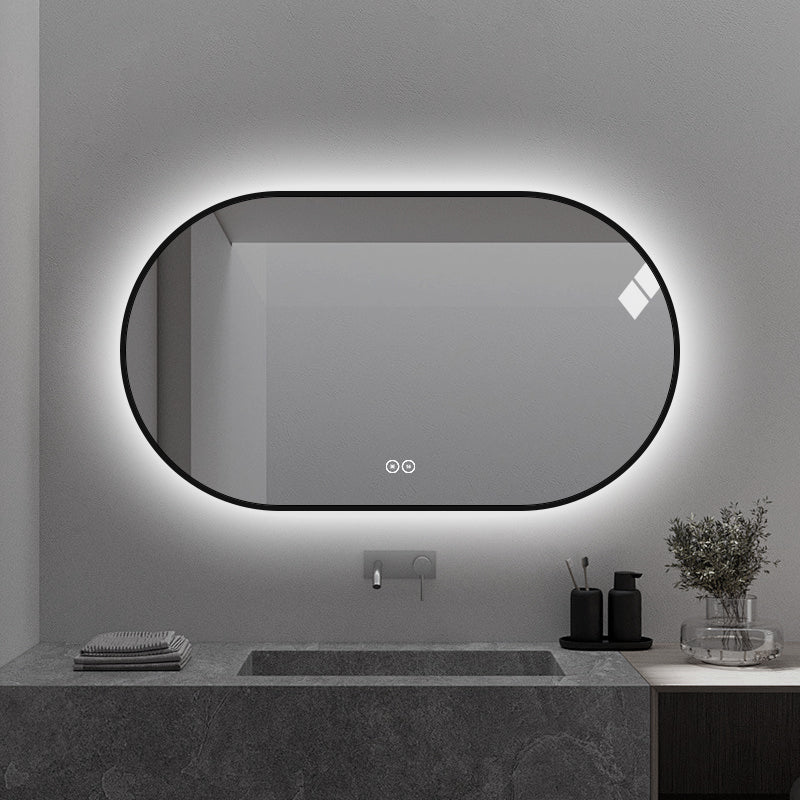 Ovalt Spejl med Lys og Antidug 140x80 cm m/sort ramme