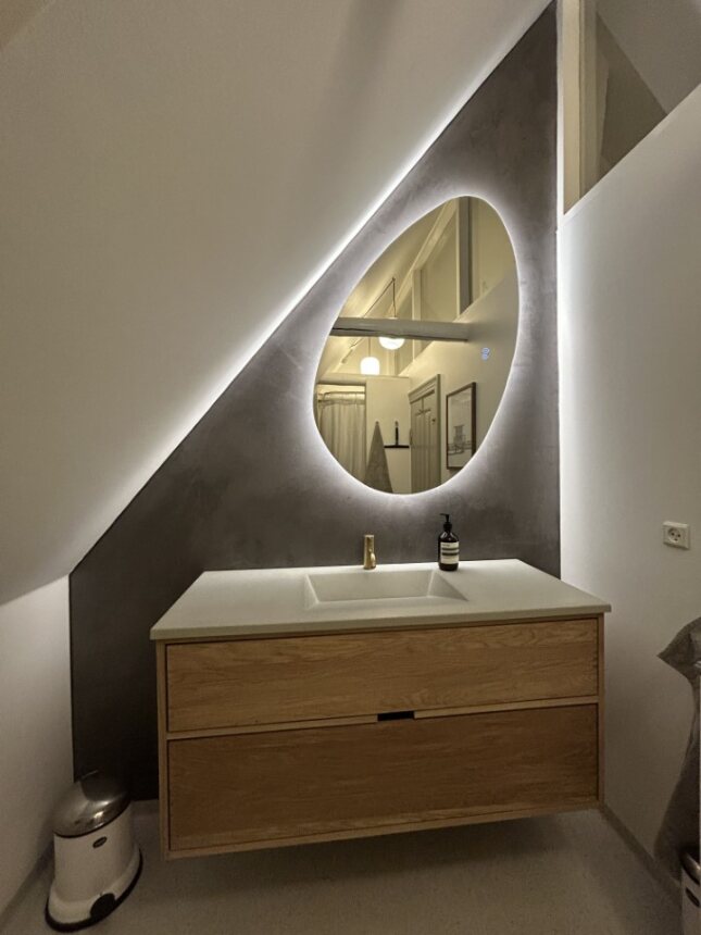 Vores spejle har LED-lys med en CRI på over 90. Det betyder, at farver gengives naturligt og korrekt, så du ser dig selv i et realistisk og behageligt lys.