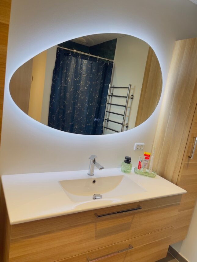 Vores spejle er udstyret med 120 LED-dioder pr. meter. Det sikrer et jævnt og kraftigt lys uden mørke zoner, så spejlet lyser ensartet hele vejen rundt.