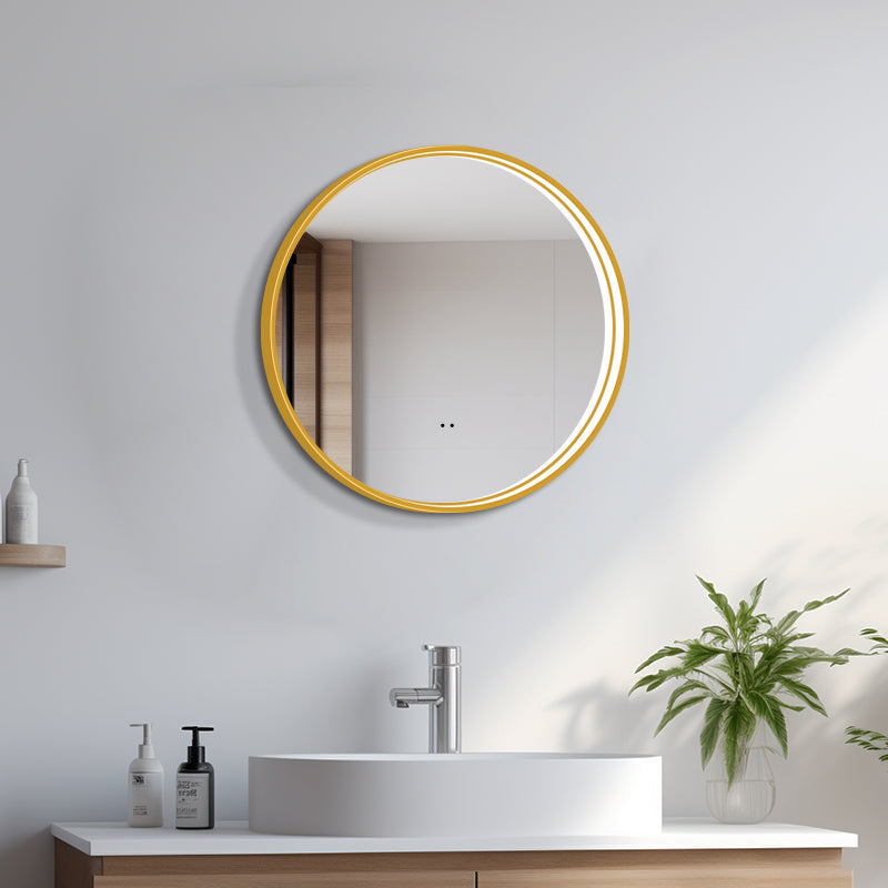 Rundt Spejl med LED-lys i Ramme og Antidug Ø60, Guld Ramme