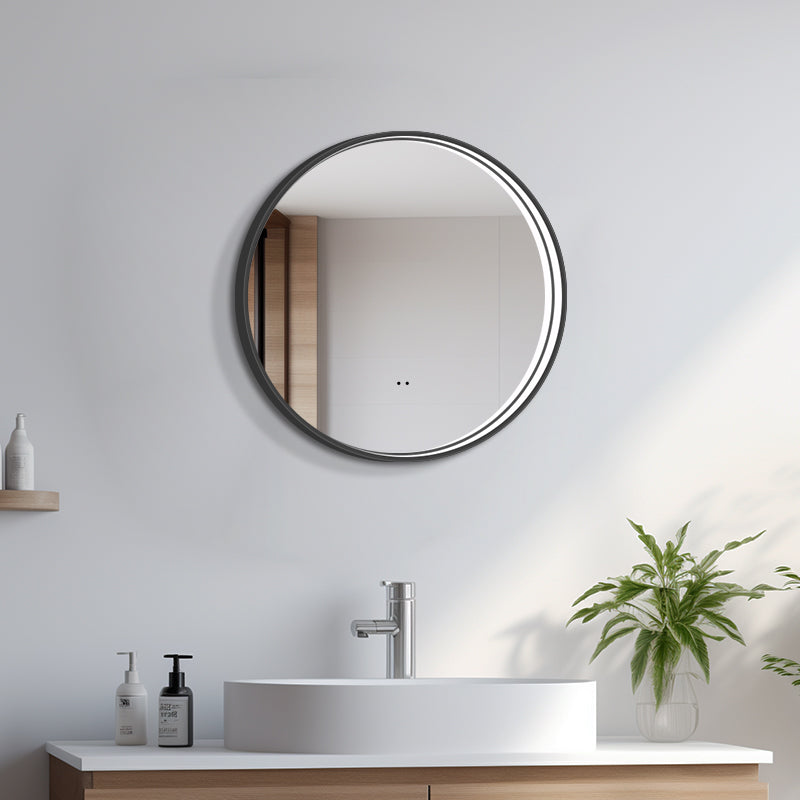 Rundt Spejl med LED-lys i Ramme og Antidug Ø60, Sort Ramme